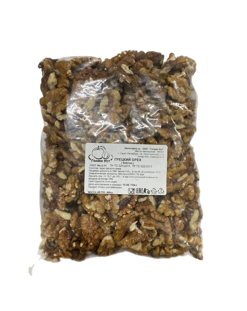 Орех Грецкий четвертинки пэт 500гр Голден Нут РФ