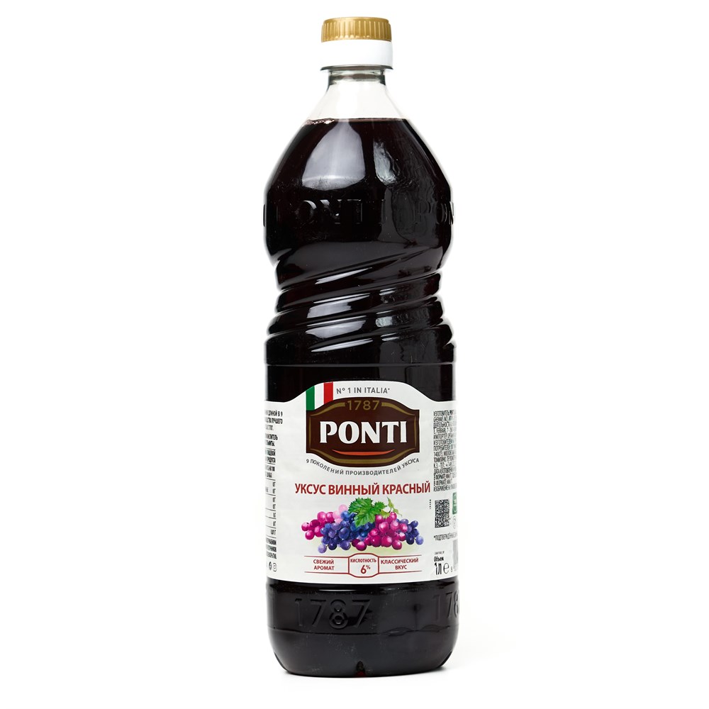 Уксус винный красный 6% Ponti пл/б (1,000мл) 12шт/упак