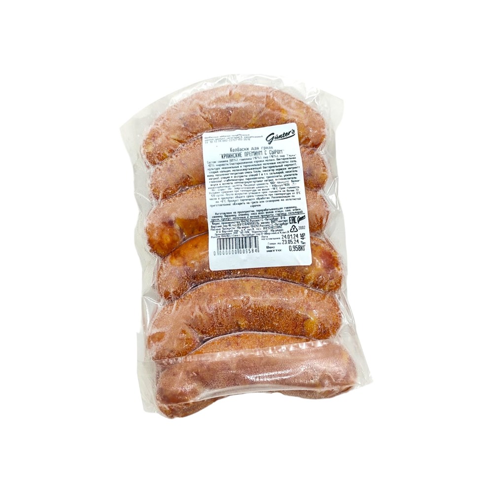 Колбаски " КРАИНСКИЕ ПРЕМИУМ С СЫРОМ GUNTER'S " 80гр/12шт, 5-7 кг/кор ЗАМОРОЗКА