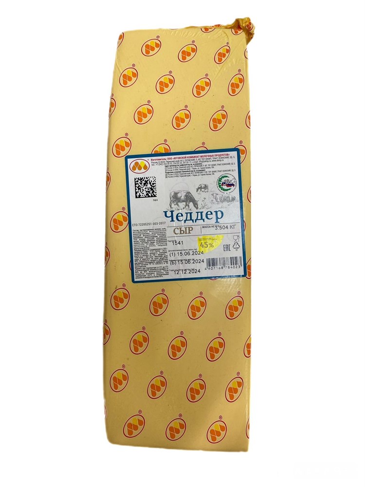 Сыр полутверд. Чеддер, 45%, брус 3/15 ЮКМП (ПС)